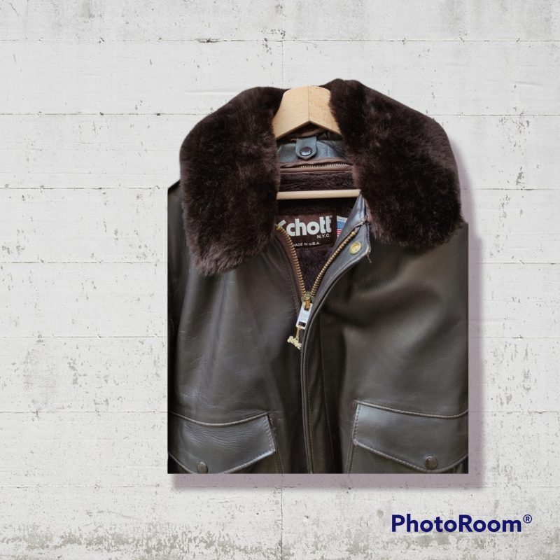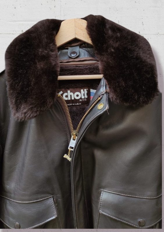 Schott Made in USA Leather Aviator Jacket Vintage Colletto Staccabile